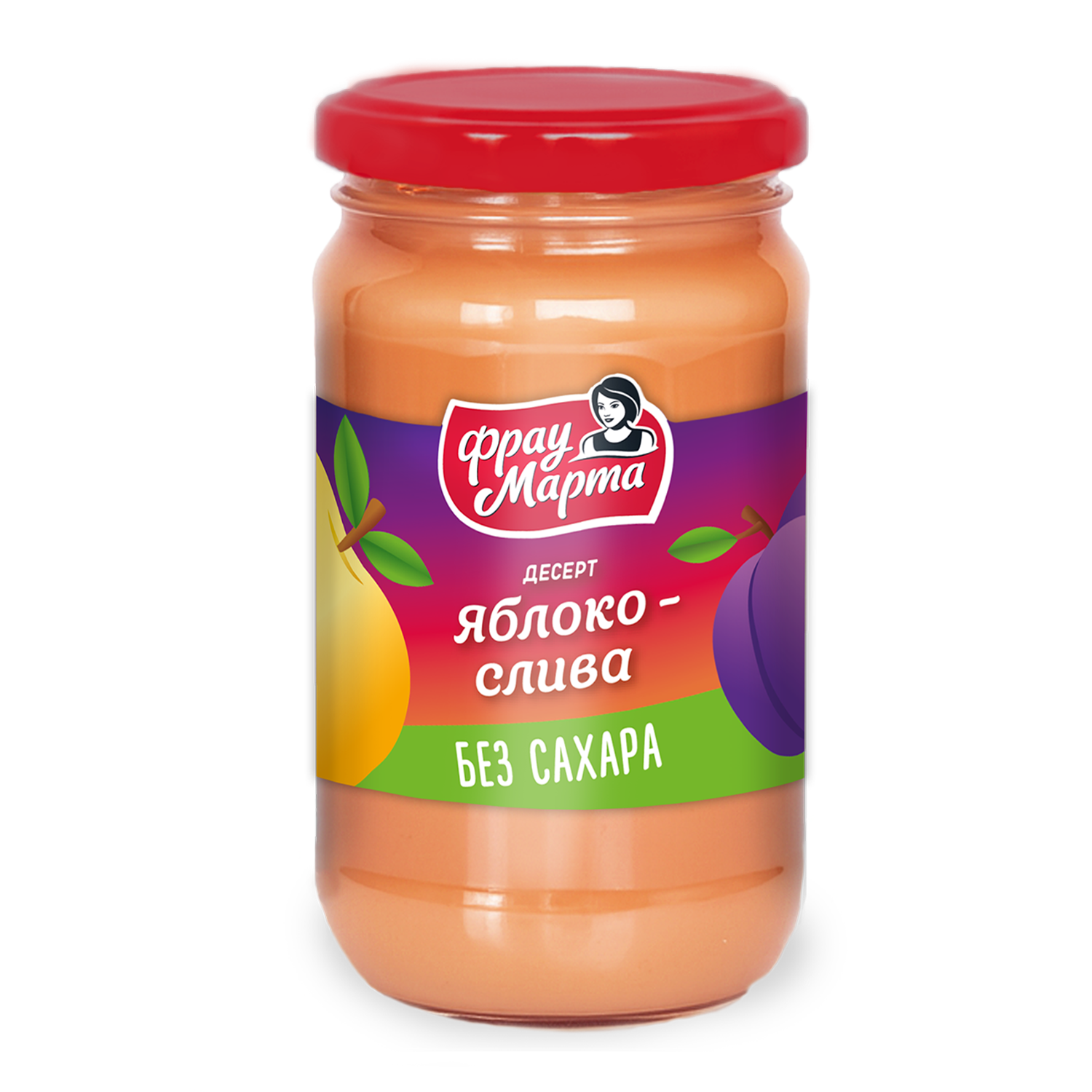 Десерт фруктовый яблоко-слива без сахара «Фрау Марта» - простой, вкусный, низкокалорийный, приготовленный из белорусских отборных спелых яблок и нежного сливового пюре.